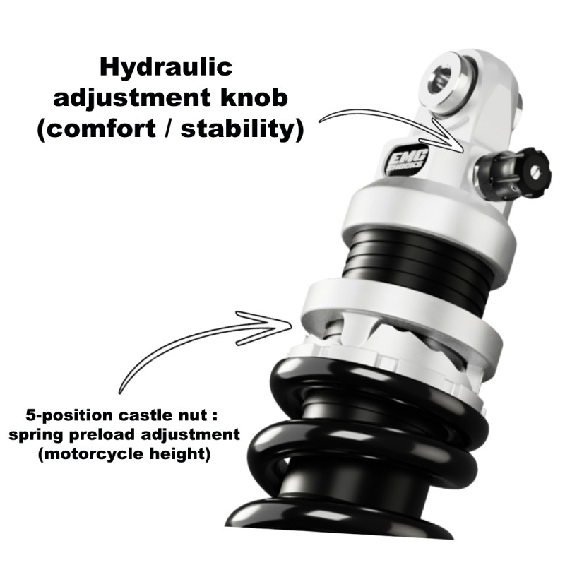 Simples à régler avec une molette de réglage hydraulique pour gérer la détente et la compression qui sont synchronisées.